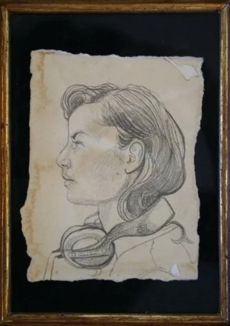 "Fig.41 - ethnic artist", 2009, pencil drawing on coffee-stained paper, velvet, glass, antique frame, hand-typed label